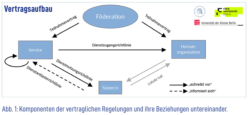 Das daraus in der zweiten Phase gewachsene Vertragswerk umfasst den grundsätzlichen Kernvertrag mit insgesamt sieben technischen und rechtlichen Anlagen. Dahinter steht zu einem großen Teil die Analyse der juristischen Grundlagen für einen rechtssicheren Datenaustausch und die genaue Klärung der datenschutzkonformen Vorgehensweisen. Alle Datenschutzbeauftragten der Partnerhochschulen waren eng in die Ausarbeitung des Vertragswerks eingebunden. Sämtliche Rechte und Pflichten im Rahmen der DSGVO und des BerlHG waren einzuarbeiten, bis hin zur Organisation der Abläufe bei Störungen oder Auskunftsersuchen. Die eigentliche Organisationsstruktur der Föderation ist bewusst schlank gehalten. Neben einer wechselnden Sprecherin oder einem Sprecher kümmert sich ein Gremium aus den IdM-Teams der Mitgliedshochschulen um die operativen Fragen. Wenn es einmal um weiterreichende Fragen geht, entscheidet ein strategisches Gremium.