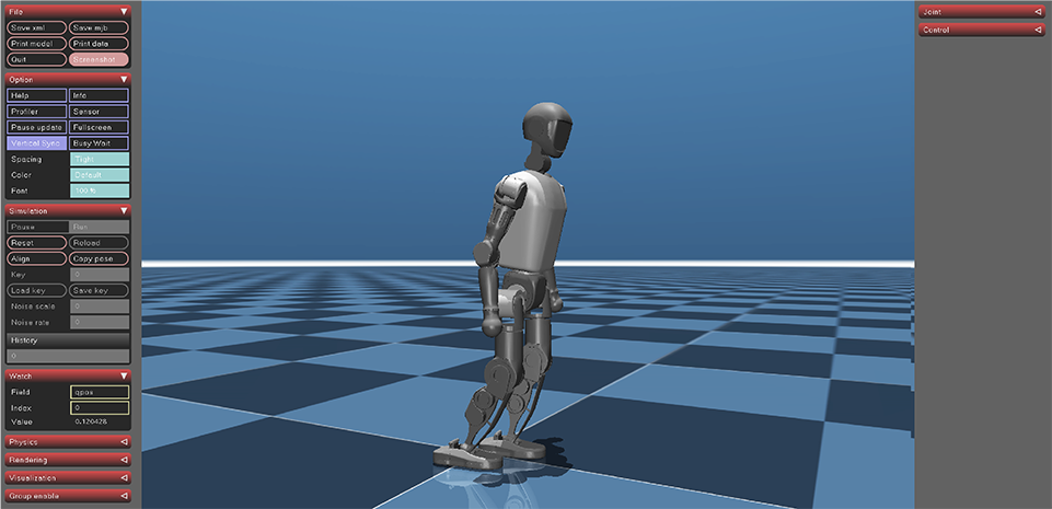 Der Lehrstuhl für Adaptive Systeme aus dem Fachbereich Informatik nutzt den HPC-Service bspw., um mit maschinellem Lernen das Laufen für humanoide Roboter zu trainieren. Dies geschieht in einem Simulator (Abb. 1) und wird dort auch getestet. Es kommen dabei sogenannte Reinforcement-Learning-Algorithmen zum Einsatz und es werden leistungsfähige GPUs benötigt.