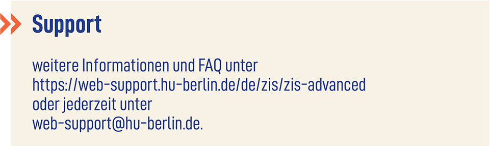 Bitte beachten: Daten, die im ZIS/ZIS Advanced geändert werden, sind sofort im ZIS selbst sichtbar. In die Content-Management-Systeme Plone und TYPO3 werden sie jedoch erst in der darauffolgenden Nacht übernommen.